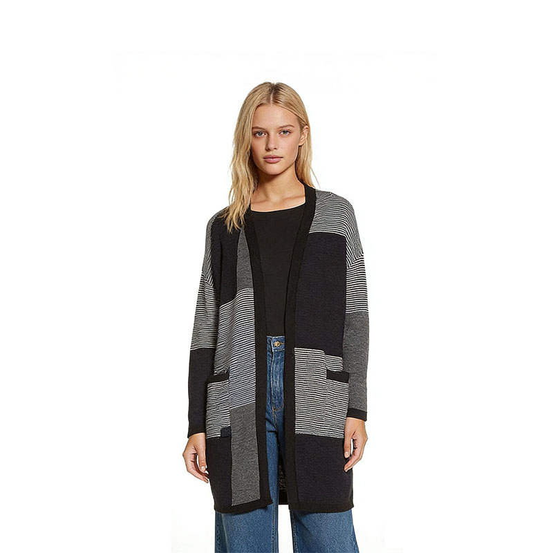 Black & Grey Stripe Patchwork Cardigan