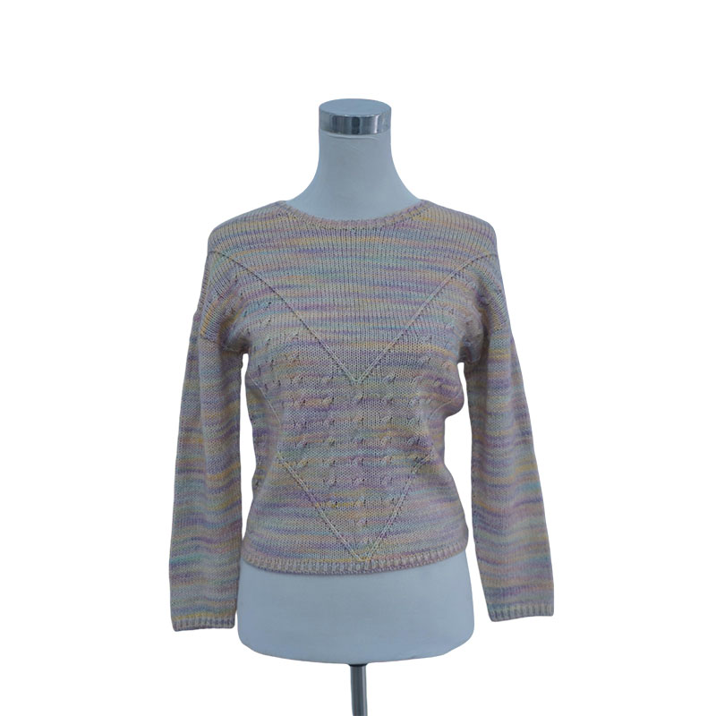 Rainbow Gradient Openwork Knit Crew Neck Sweater